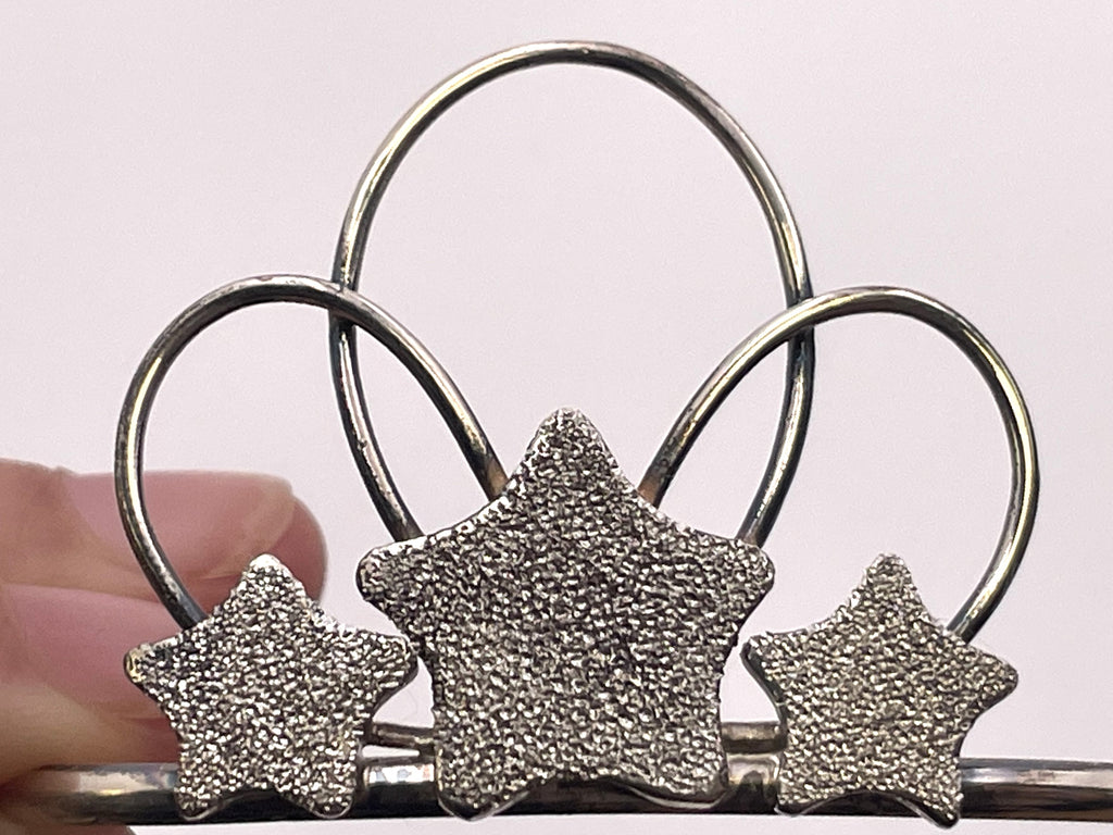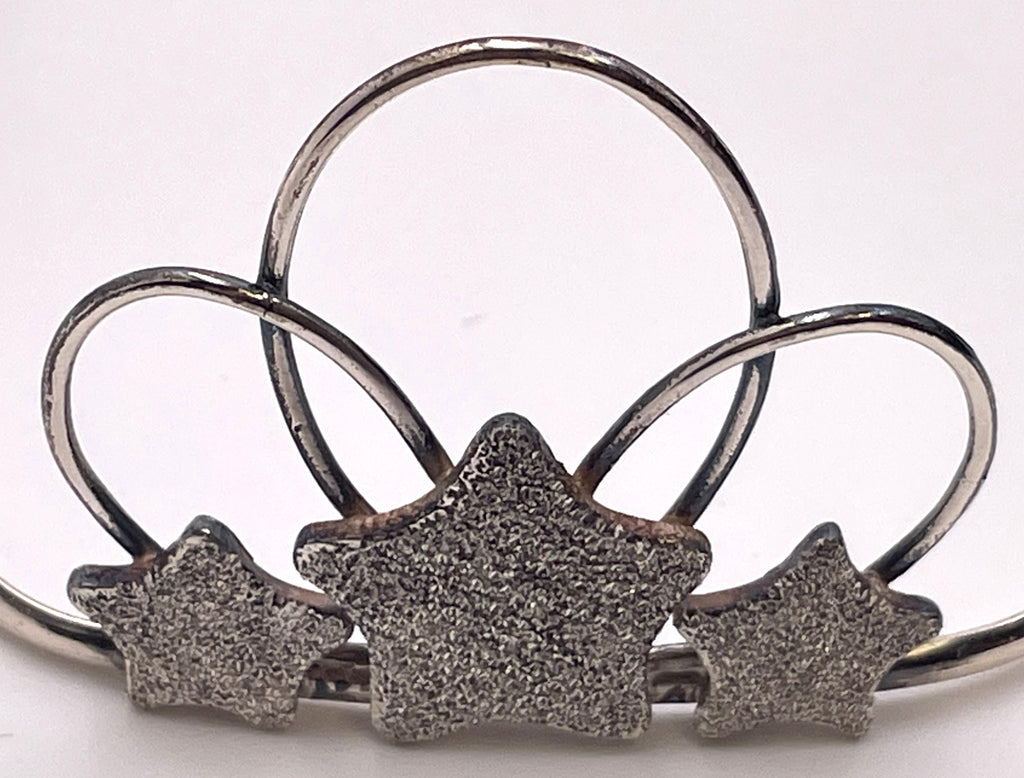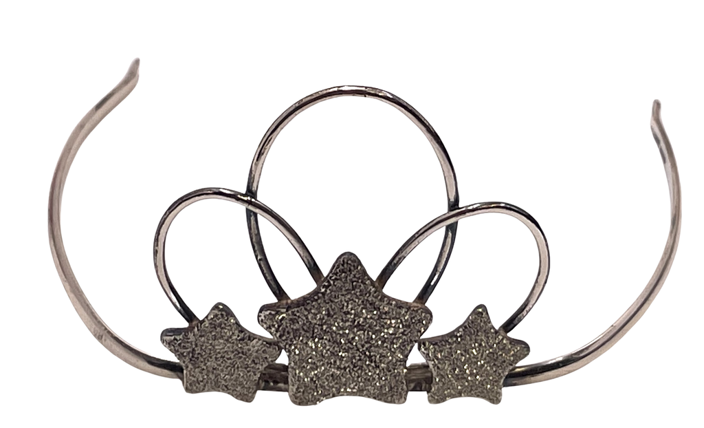 Lunt sterling silver tiara, with encrusted stars and openwork. It measures 2 1/2'' in depth by 2 3/4'' in width by 1 1/4'' in height and is in new condition.