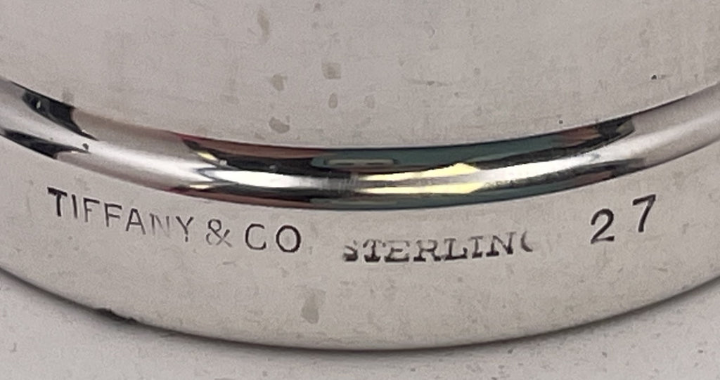 Tiffany & Co. sterling silver pepper mill in Mid-Century Modern Style with a beautiful geometric design. It measures 2 1/2'' in height by 1 2/3'' in diameter and bears hallmarks as shown.