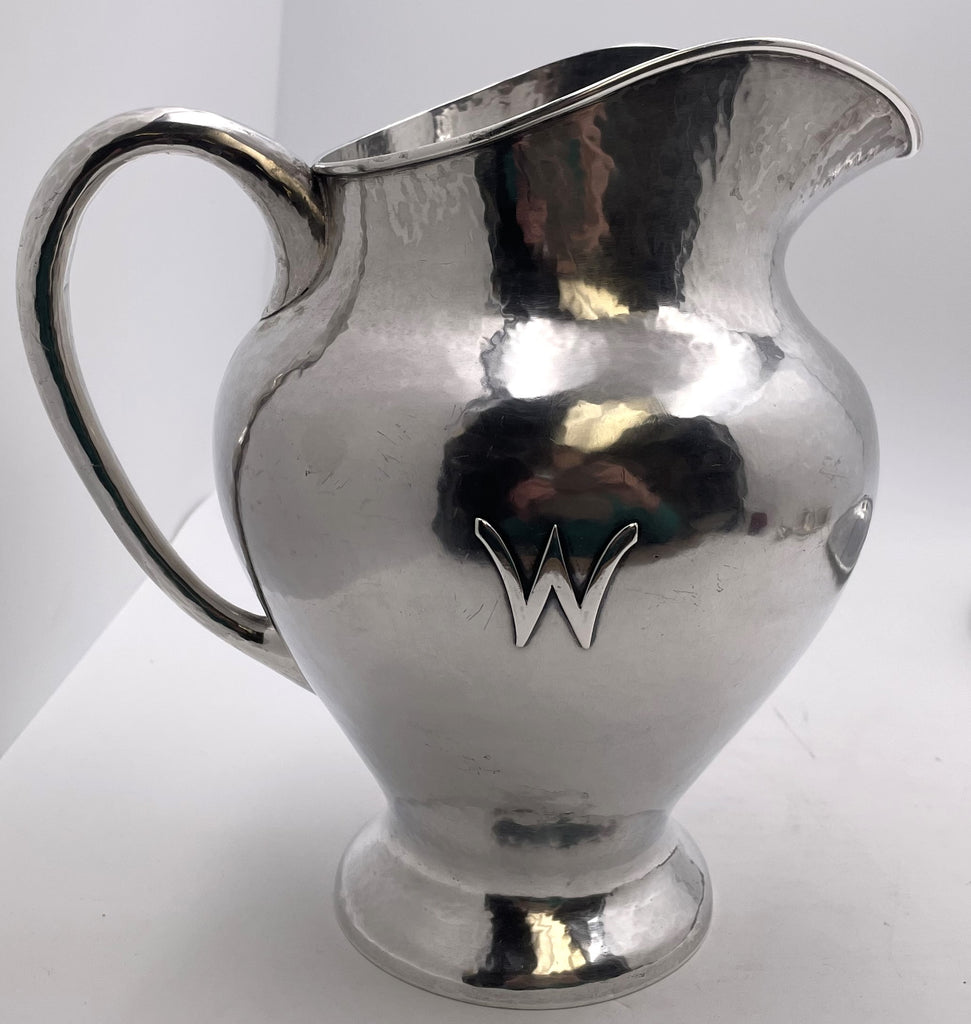 F. Novick Chicago Arts & Crafts Sterling Silver Hammered Pitcher on Tray