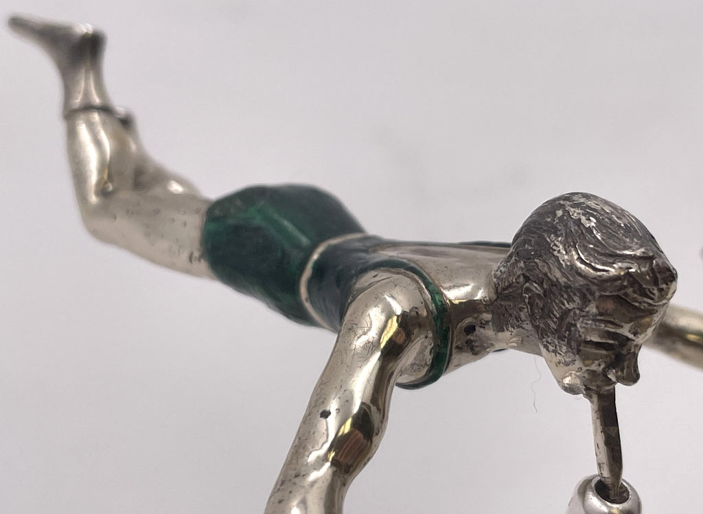 Tiffany & Co. Sterling Silver and Enamel Set of 2 Acrobatic Circus Figurines on Plinths by Gene Moore