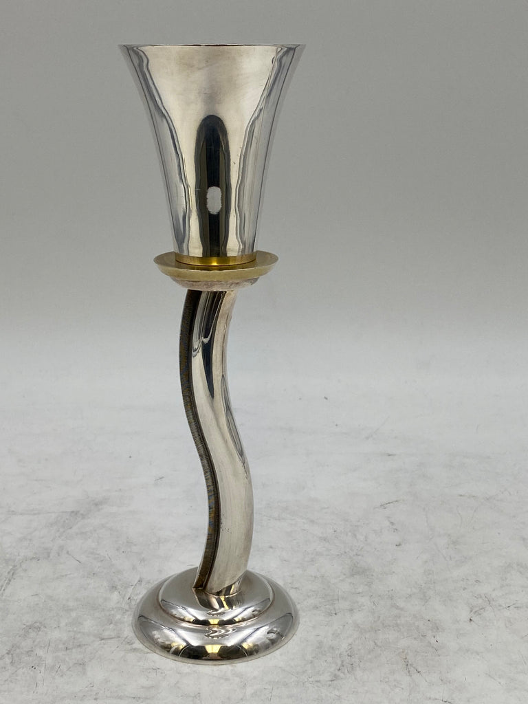 Partially gilt sterling silver Kos Eliyahu / Passover cup by De Vecchi in charming, modern design. Measuring 9 1/2'' in height by 2 3/4'' in diameter at the base and weighing 9.3 ozt. Bearing hallmarks as shown. Perfect to adorn and elevate your Passover table!