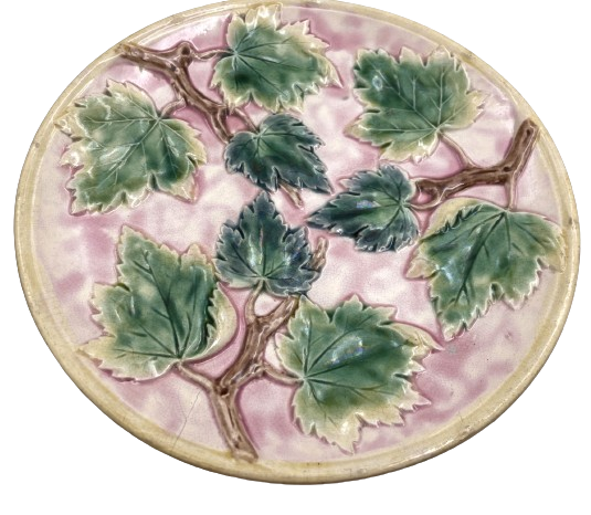 Etruscan Majolica Leaf Plate Dish from Late 19th Century