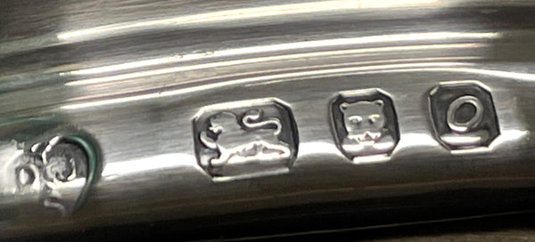 Pair of English sterling silver and wood coasters, made in London in 1969, with pierced geometric motifs. They measure 5 1/2'' in diameter by 1 2/3'' in height and bear hallmarks as shown.