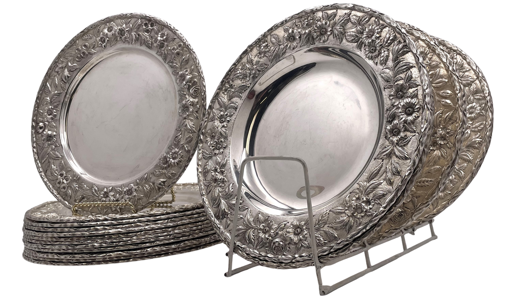 S. Kirk & Son Sterling Silver Set of 18 Chargers/ Plates in Repousse Pattern
