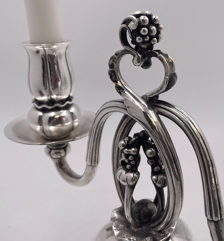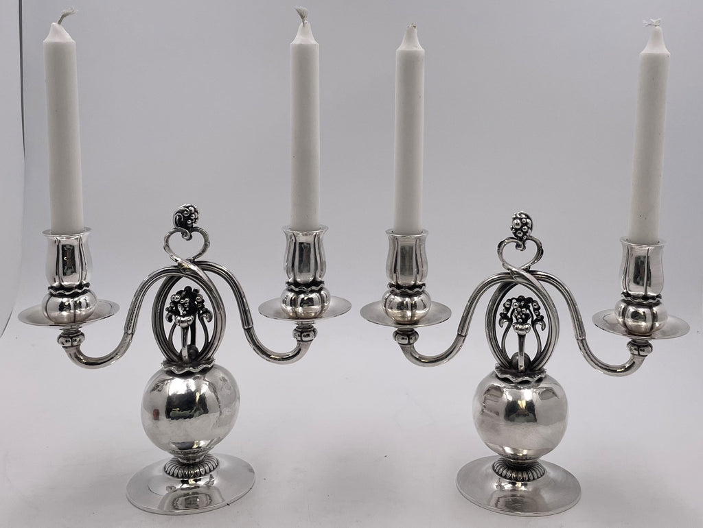 Pair of Georg Jensen Sterling Silver 2-Light Candelabra #324 Pomegranate